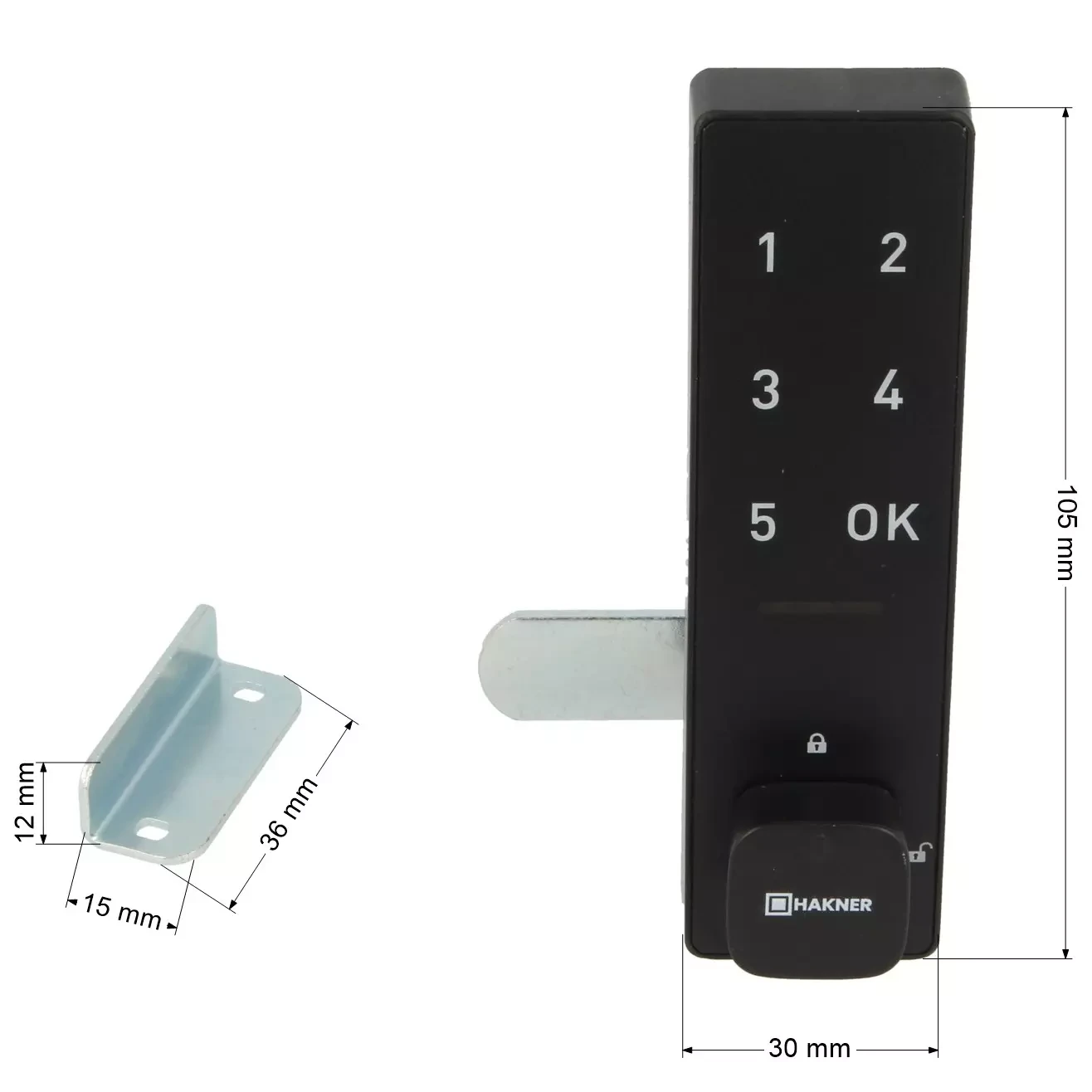 Zamek szyfrowy elektroniczny na kod pionowy z ryglem Hakner Laggo-C L-30mm