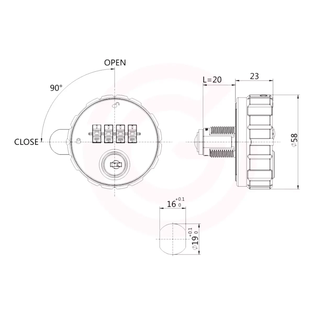 Zamek szyfrowy mechaniczny OWT plastik Hakner ø58x20mm prywatny
