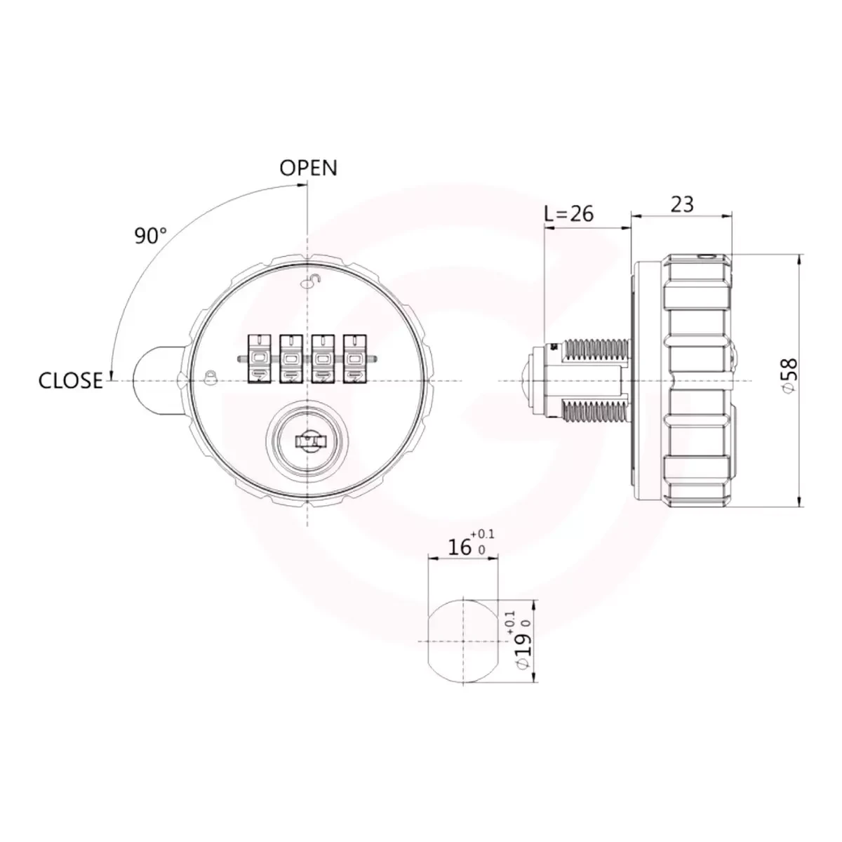 Zamek szyfrowy mechaniczny OWT plastik Hakner ø58x26mm prywatny